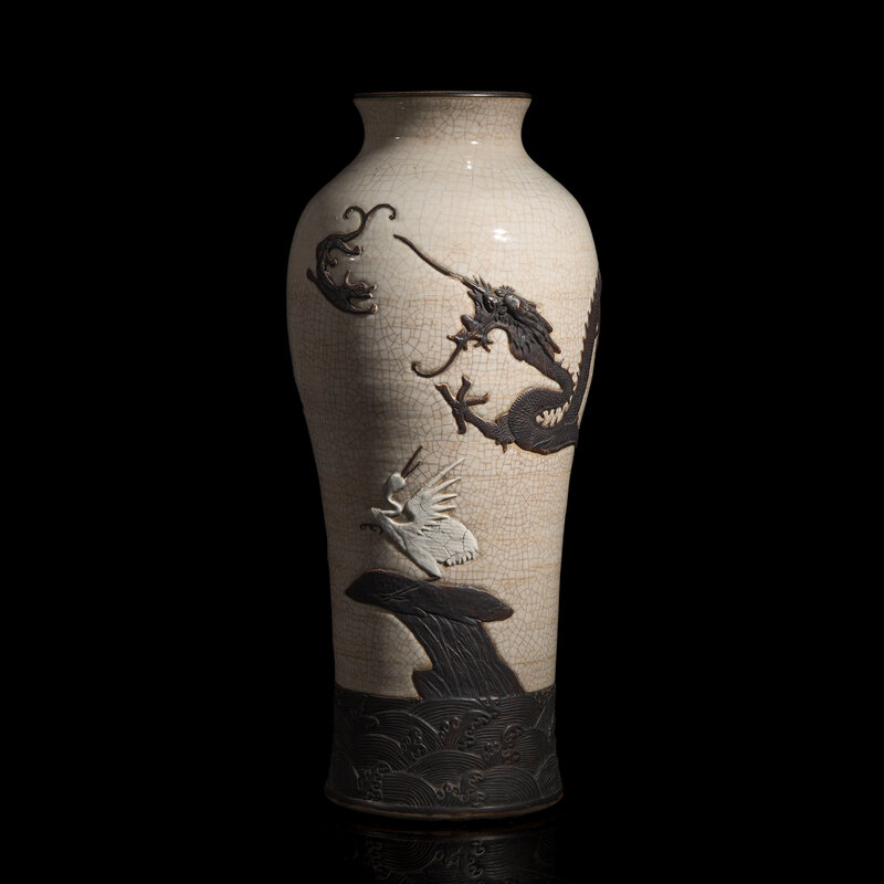A Large Chinese Crackle Glazed Iron-Decorated 'Dragon and Crane' Vase, Late 19th Century