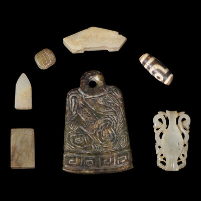 A Group of Seven Chinese Jades and Agate, Qing Dynasty and Later