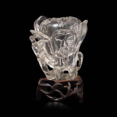 A Chinese Rock Crystal 'Magnolia' Vase with wood stand, 19th Century