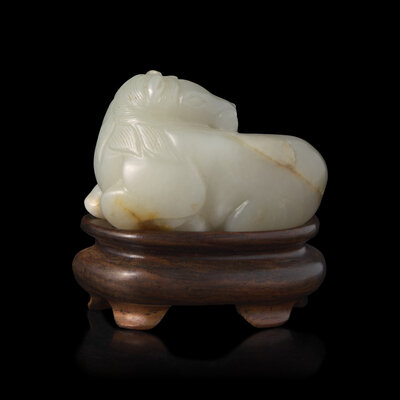 A Small Chinese Greyish-White Jade Figure of a Horse