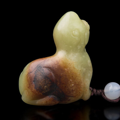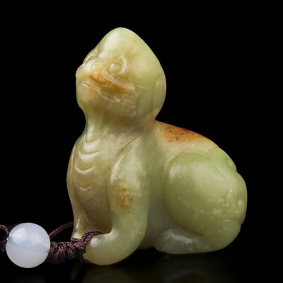 A Chinese Russet and Yellow Jade Figure of a Mythical Beast