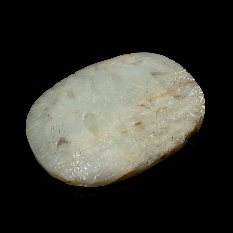 A Chinese Pale Celadon Jade 'Immortals' Pebble, Late 19th-Mid 20th Century