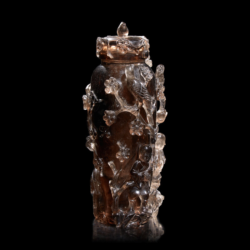 A Chinese Carved Smoky Quartz Vase and Cover