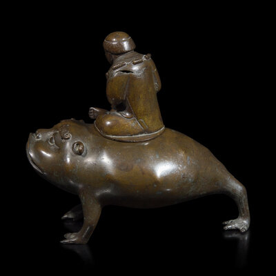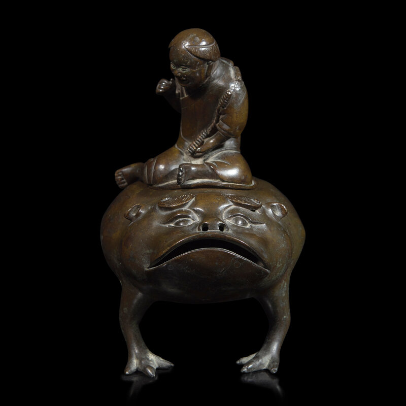 A Chinese Patinated Bronze "Liuhai and Toad" Censer, 17th/18th Century