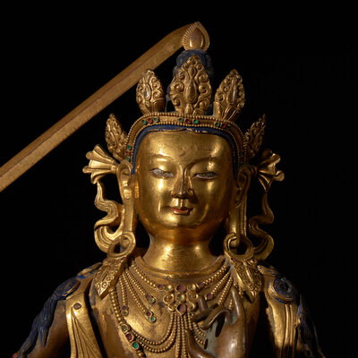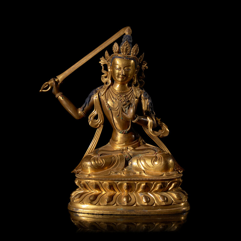 A Sino-Tibetan Gilt Bronze Figure of the Bodhisattva Manjusri