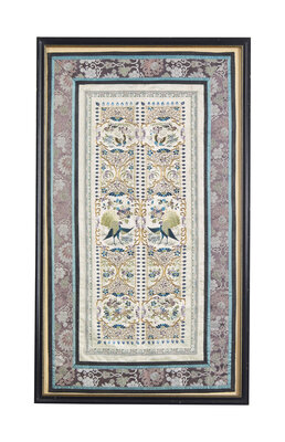 Three Chinese Embroidered Silk Panels, Late Qing/Republic Period