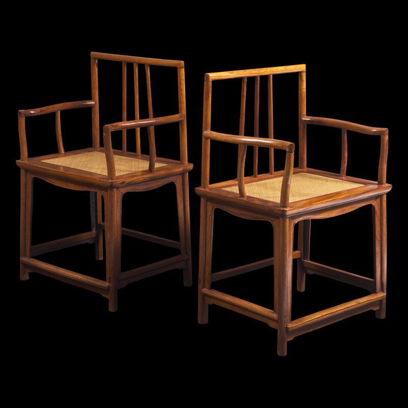 A Pair of Chinese Huanghuali Armchairs, Meiguiyi, 17th/18th Century and With Later Elements