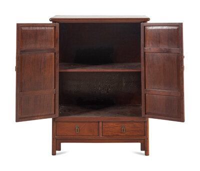 A Small Chinese Hardwood Round Corner Tapered Cabinet, Yuanjiaogui, 20th Century