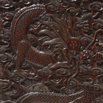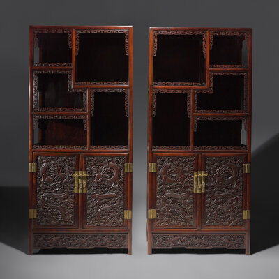 A Pair of Carved Hongmu "Dragons" Display Cabinets