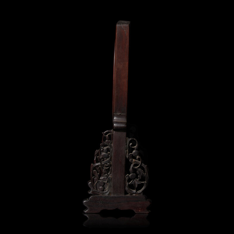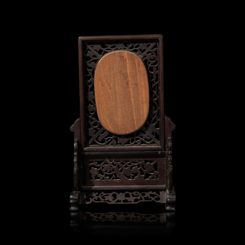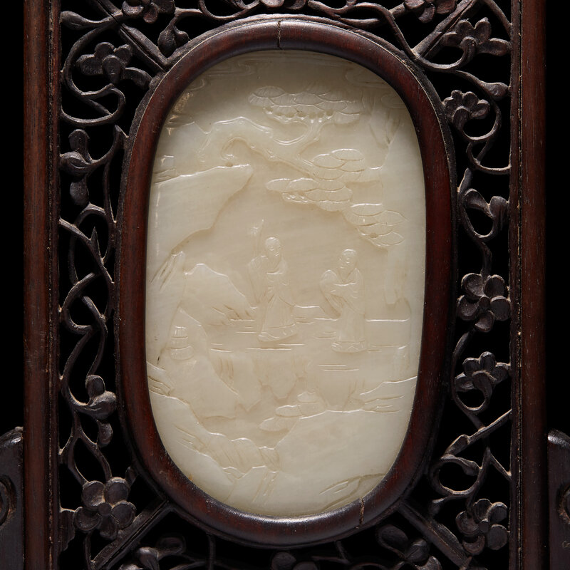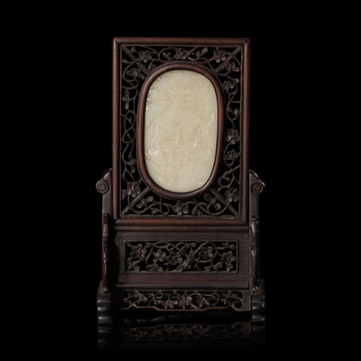 A Small Chinese White Jade Inset Carved Wood Table Screen, Jade: Qing Dynasty