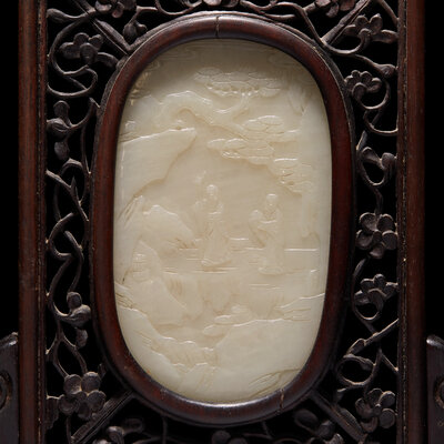 清 硬木嵌白玉高士圖小桌屏