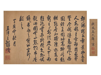 Signed and inscribed with three seals to the left side, one seal to the lower right corner; with colophon after Wang Duo, inscribed and with two seals.