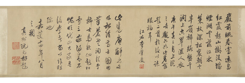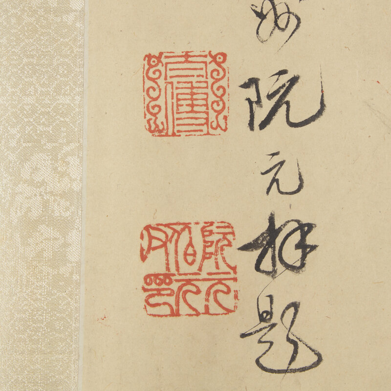 Two colophons, the first after Li Zhaoqing, with one seal, Jiangyou Li, the second after Ruan Yuan (1764-1849), with two seals, Ruan Yuan Boyuan zhi yin, Tai fu.