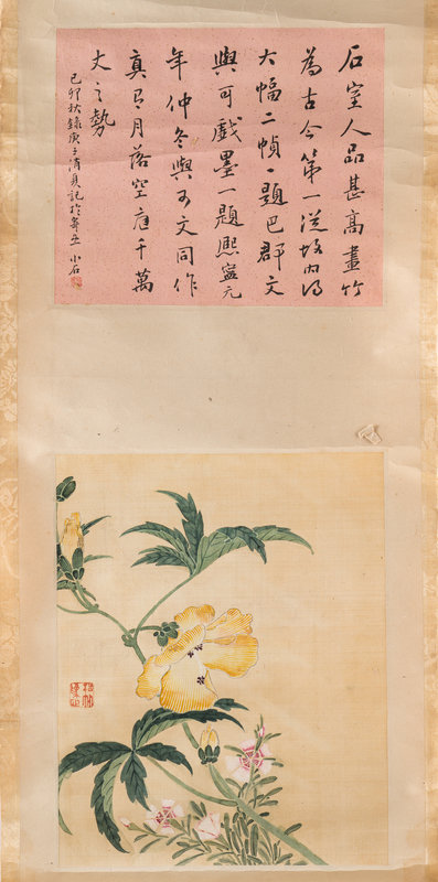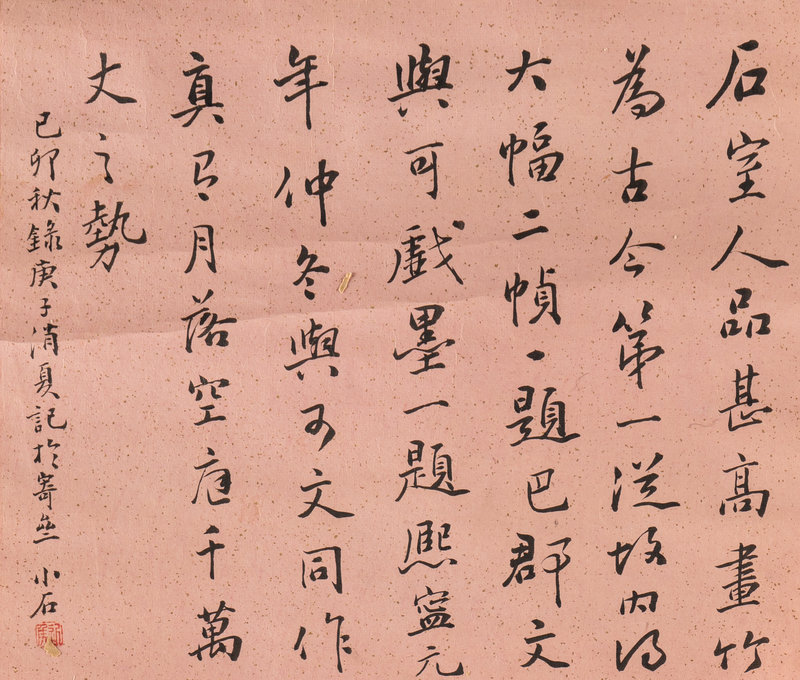 題跋:石室人品甚高,畫竹為為古今第一。從故内得大幅二幀,一題八郡文與可戯墨,一題熙寧元年仲冬與可文同作。真有月落空庭千萬丈之勢。己卯(1855)秋錄庚子消夏記于寄齋,小石。