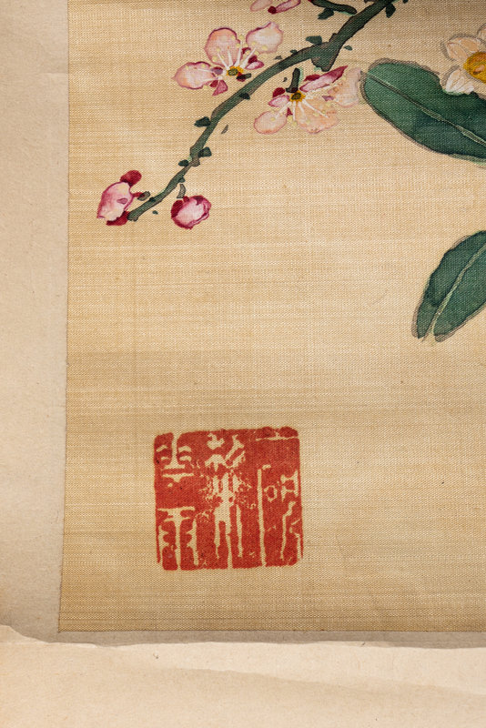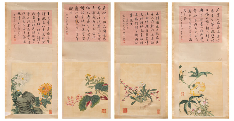 絹本設色,立軸四條屏