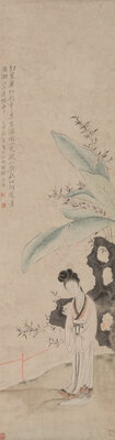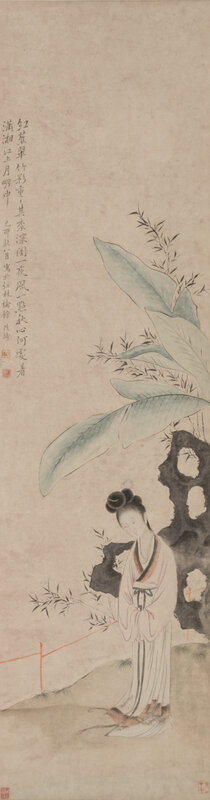款識:红蕉翠竹影重重,其奈深闺一夜风。一点秋心何处着,潇湘江上月明中。己卯(1819)秋八月写于红林檎馆,改琦。