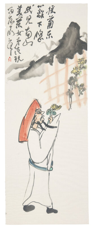 Inscribed, dated to a Bingchen year, equivalent to 1976, dedicated to Meilan Nvdi, and signed, with one seal of the artist, height 36 1/4 in., 92 cm.; width 13 3/4 in., 35 cm.