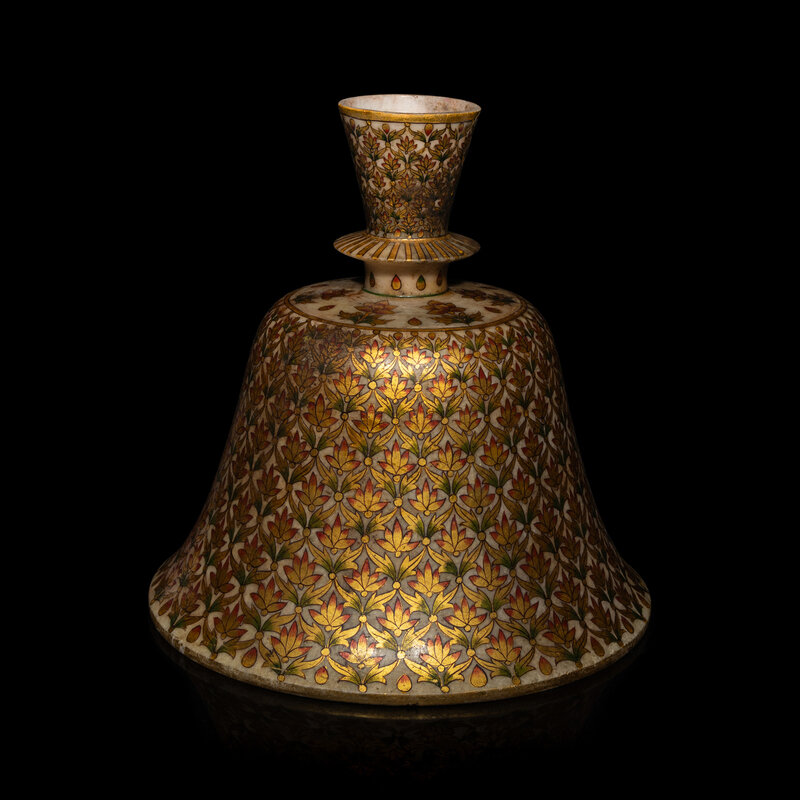 A Mughal Marble Gilt and Polychrome Painted Marble Hookah Base, 19th Century
