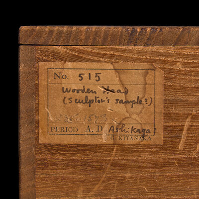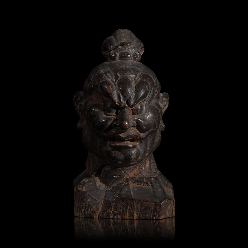 A Small Japanese Carved and Lacquered Wood Head of a Nio Guardian, Agyo, Possibly Muramachi Period