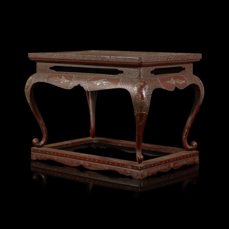A Japanese Mother-of-Pearl Inlaid Dark Brown Lacquer Rectangular Stand, Edo Period