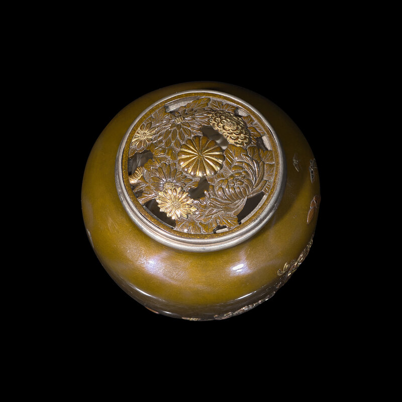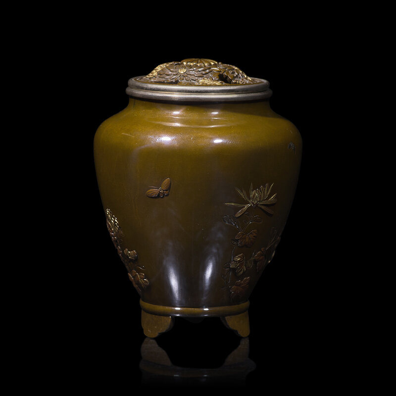 A Japanese Mixed Metals Small Koro and Cover, Inoue, Meiji-Taisho Period