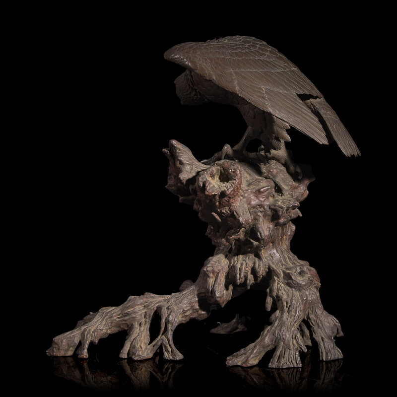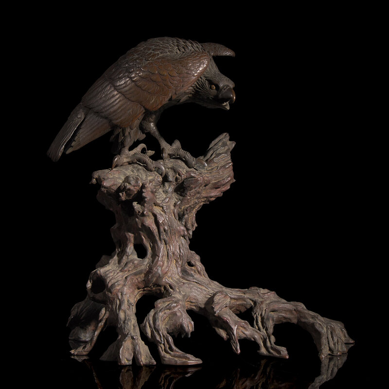 A Japanese Bronze Model of a Hawk, Meiji Period