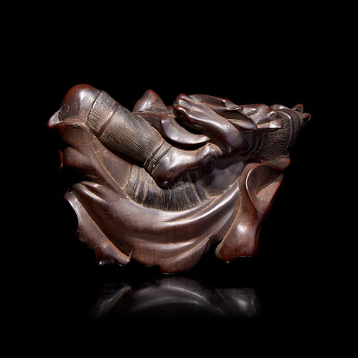 A Japanese Carved Boxwood "Oni" Okimono, Meiji Period