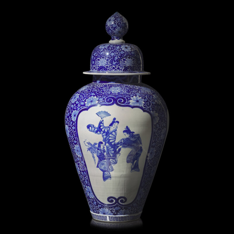 A Large Japanese Blue and White Porcelain Jar and Cover, Meiji Period