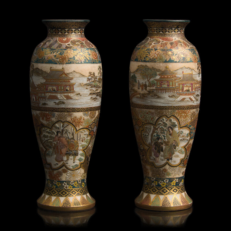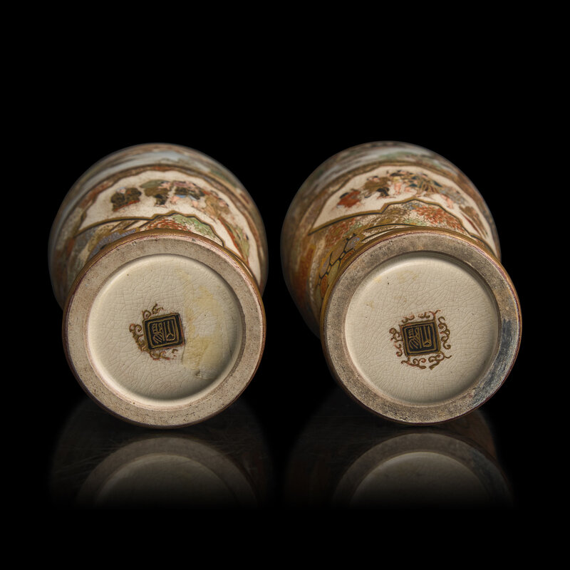 A Pair of Japanese Satsuma Type Cabinet Vases, Yozan, Meiji Period