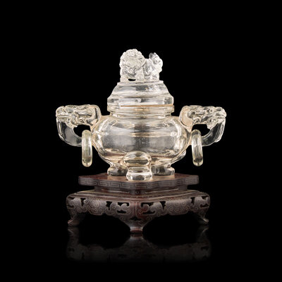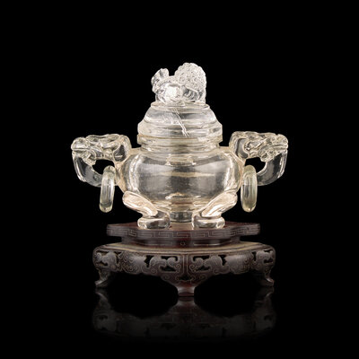 A Small Chinese Rock Crystal Tripod Censer and Cover, 20th Century
