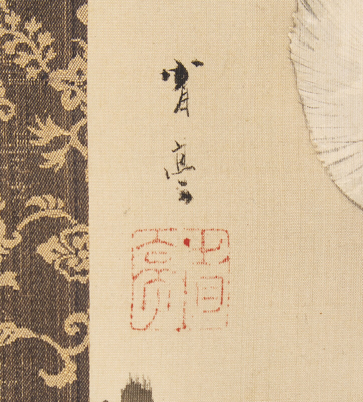 Ink and color on silk, signed and with one seal center left, mounted as a hanging scroll.