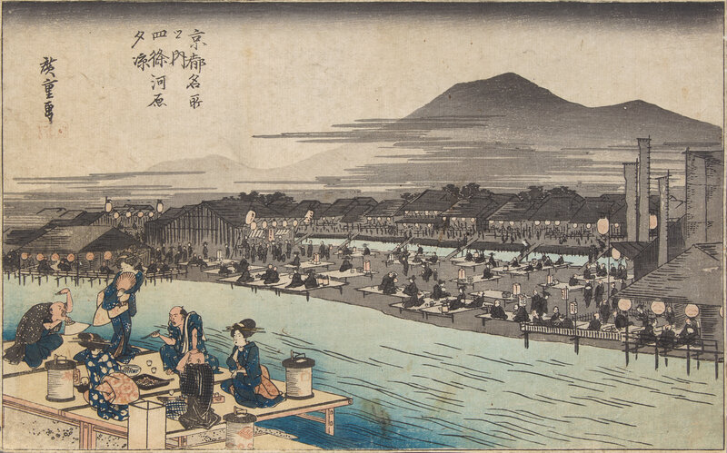 -Enjoying the Cool of Evening on the Riverbed at Shijo, unframed