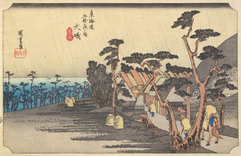 -Oiso, Tora no-Ame, fromThe Fifty-three Stations of the Tōkaidō, possibly a later example based on the original composition, unframed, matted