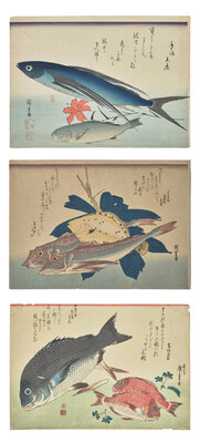 Utagawa Hiroshige, (Japanese, 1797-1858) Three Woodblock Prints from The Grand Series of Fish, Uozukuski