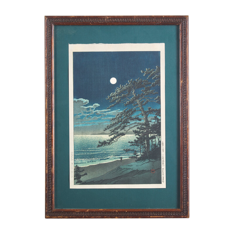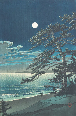 -Spring Moon at Ninomiya Beach, published by Doi Hangaten, printer Itoh, carver Ikeda