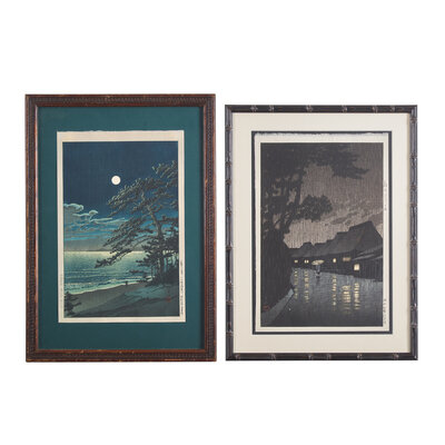 Two woodblocks printed in colors, framed and glazed, comprising: