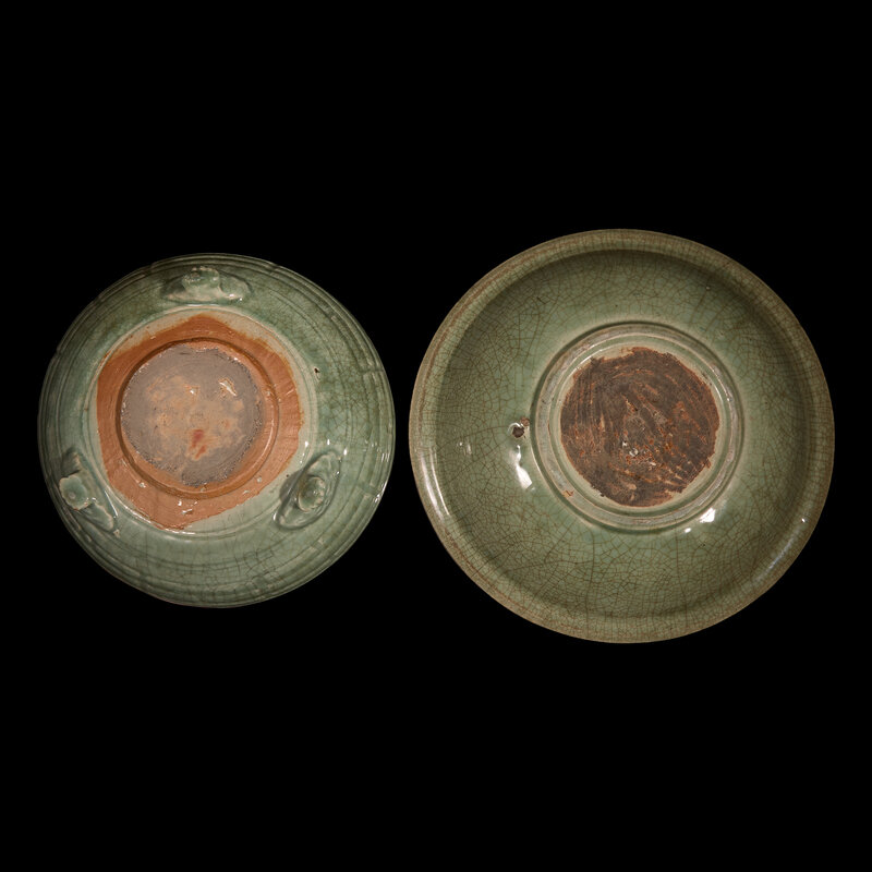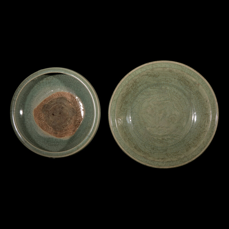 明或更晚 龍泉青瓷大盤及三足香爐各一