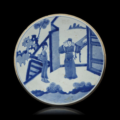 A Chinese Blue and White Porcelain Circular Plaque, Kangxi Period