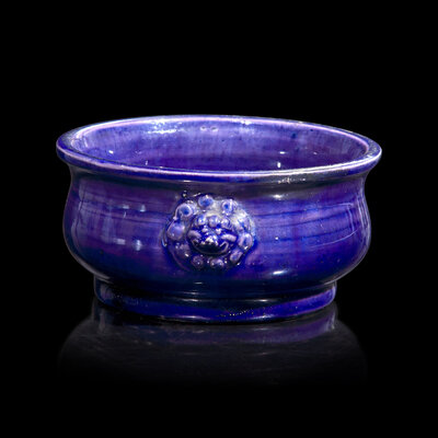 A Small Chinese Aubergine Glazed Censer, 18th Century 清中期 茄皮紫釉鋪首小香爐