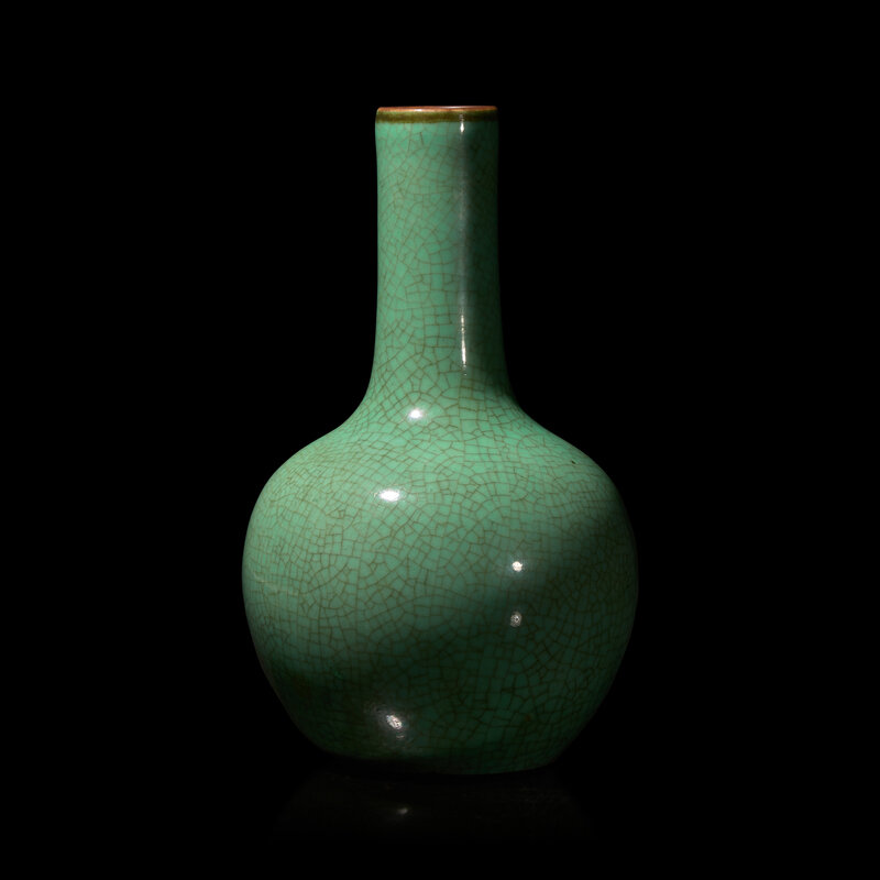 A Chinese Green Glazed Crackled Ground Porcelain Bottle Vase, Tianqiuping, 18th Century