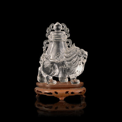 近代 雕水晶獣形蓋瓶