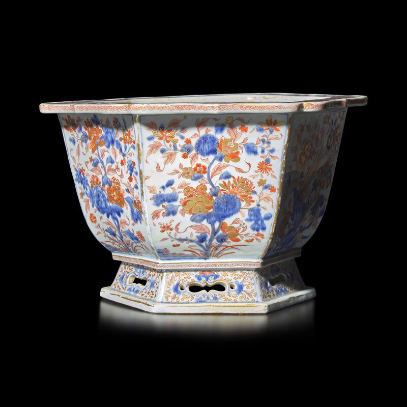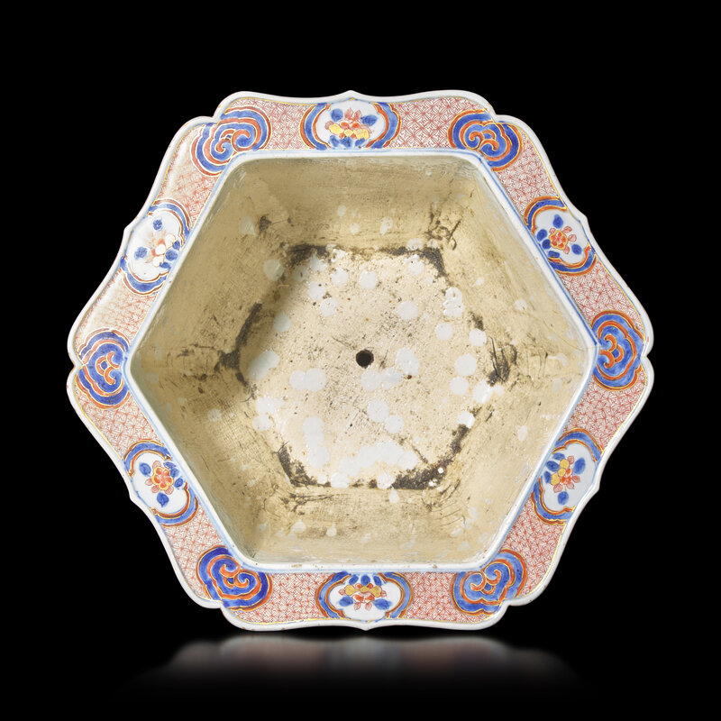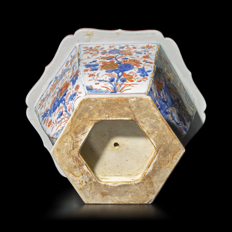 A Chinese Export "Imari" Palatte Hexagonal Jardiniere, Kangxi Period