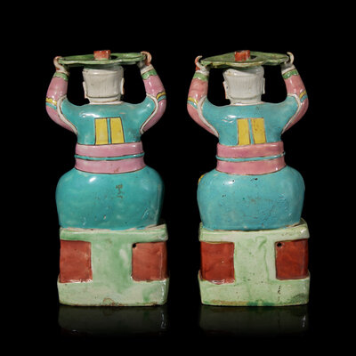 清乾隆-嘉慶 外銷粉彩胡人像燭臺一對