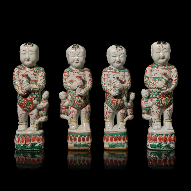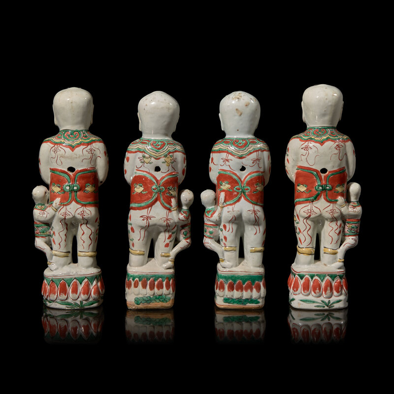 Two Pairs of Chinese Famille Verte "Boys" Figures, 18th-19th Century