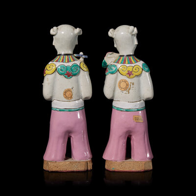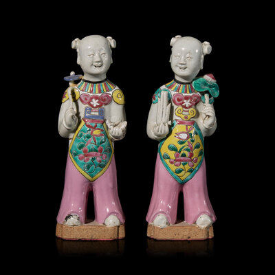 A Pair of Chinese Famille Rose "Boys" Figures, Qianlong-Jiaqing Period