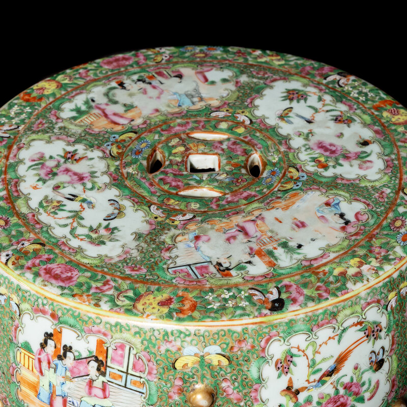 A Near Pair of Chinese 'Rose Medallion' Garden Stools, Second Half 19th Century
