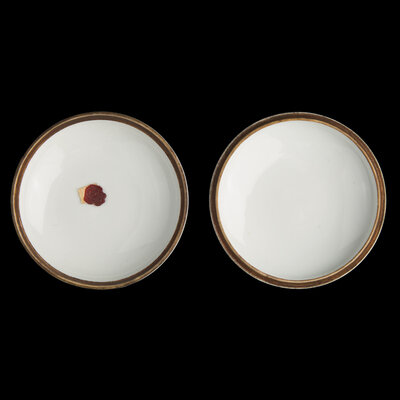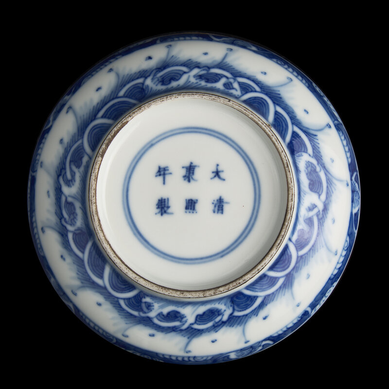 The cover finely-decorated with a pair of sinuous dragons contesting a flaming jewel, among flames and cloud scrolls, a wave border around the base, underside with apocryphal six-character Kangxi mark.