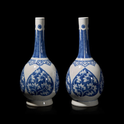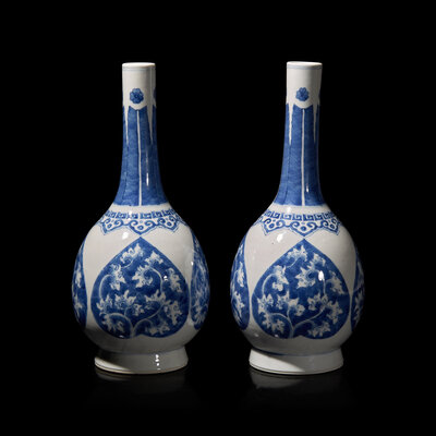 A Pair of Chinese Blue and White Porcelain Bottle Vases, Probably Guangxu Period