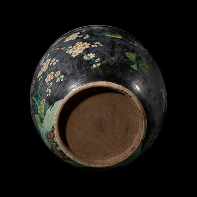 晚清-民國 黑地五彩喜上眉梢圖缸