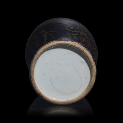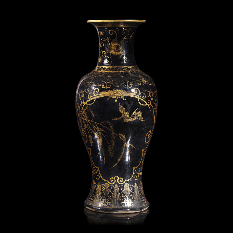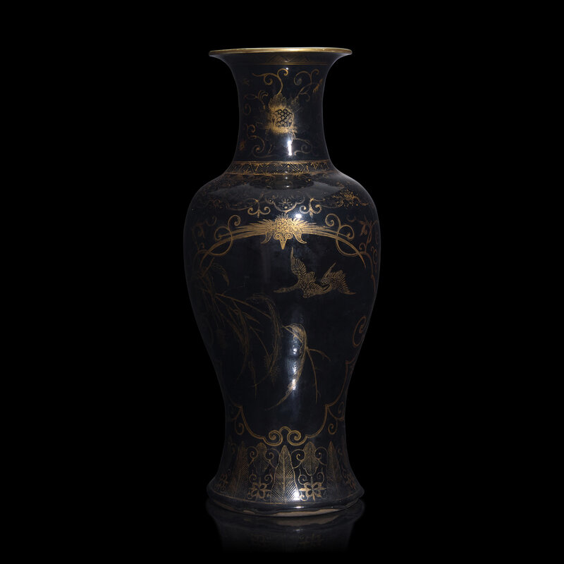 A Chinese Gilt-Decorated "Mirror-Black" Baluster Vase, Late Qing to Republic Period